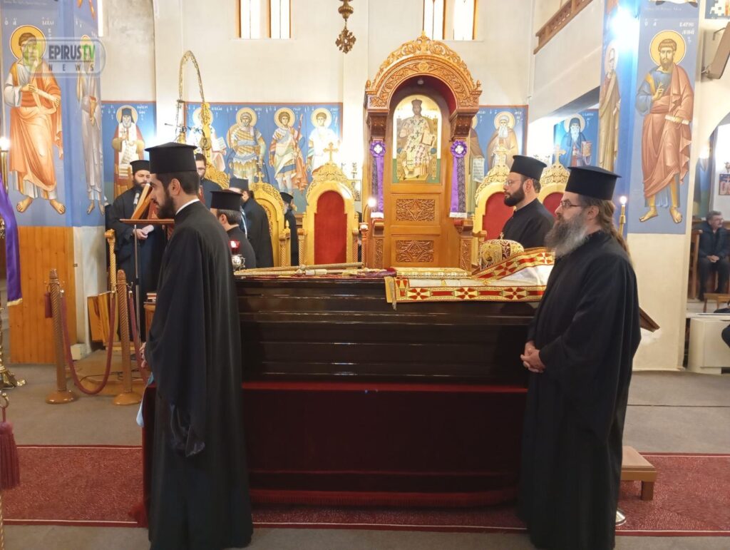 Στην εξόδιο ακολουθία που τελέστηκε στον Προσκυνηματικό Ναό Αγίου Κοσμά Κονίτσης, έλαβαν μέρος οι Μητροπολίτες πρώην Άρτης κ. Ιγνάτιος, Αυλώνος κ. Χριστόδουλος, Κερκύρας κ. Νεκτάριος, Άρτης κ. Καλλίνικος, Κηφισίας κ. Κύριλλος, Γλυφάδας κ. Αντώνιος, Γρεβενών κ. Δαβίδ, Σιατίστης κ. Αθανάσιος, Καστορίας κ. Καλλίνικος, Παραμυθίας κ. Σεραπίων και Μαντινείας κ. Επιφάνιος.