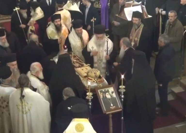 Δεκάδες ήταν οι πιστοί που συνέρρευσαν από νωρίς για να αποτίσουν φόρο τιμής και να πουν το τελευταίο αντίο στον αγαπητό μητροπολίτη, ο οποίος έφυγε από τη ζωή το μεσημέρι του Σαββάτου μετά από τρίμηνη περίπου νοσηλεία στη Μονάδα Εντατικής Θεραπείας του Νοσοκομείου Χατζηκώστα.