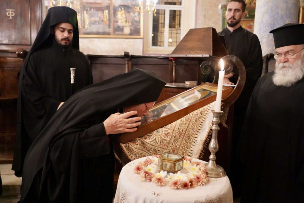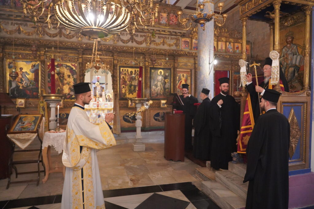 Το απόγευμα της Τετάρτης, 22 Οκτωβρίου 2025, η Α.Θ. Παναγιότης ο Οικουμενικός Πατριάρχης κ.κ. Βαρθολομαίος χοροστάτησε στον Ι. Ναό του Αγίου Γεωργίου Νεοχωρίου Βόσπορου, Μετoχίου του Πανάγιου Τάφου, στον εσπερινό της Θρονικής εορτής του Πατριαρχείου Ιεροσολύμων, κατά την οποία τιμάται η μνήμη του Αγίου ενδόξου Αποστόλου Ιακώβου του Αδελφοθέου, πρώτου Επισκόπου Ιεροσολύμων.