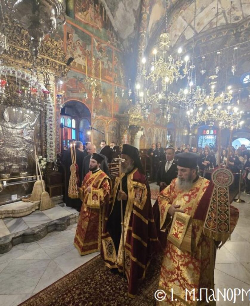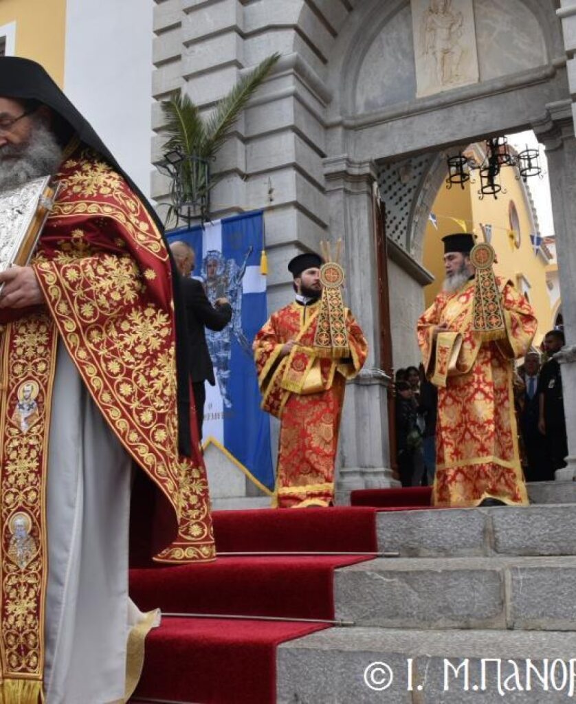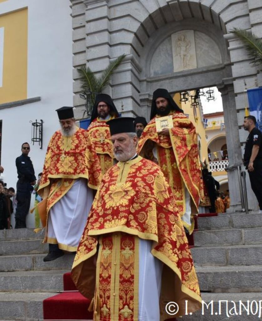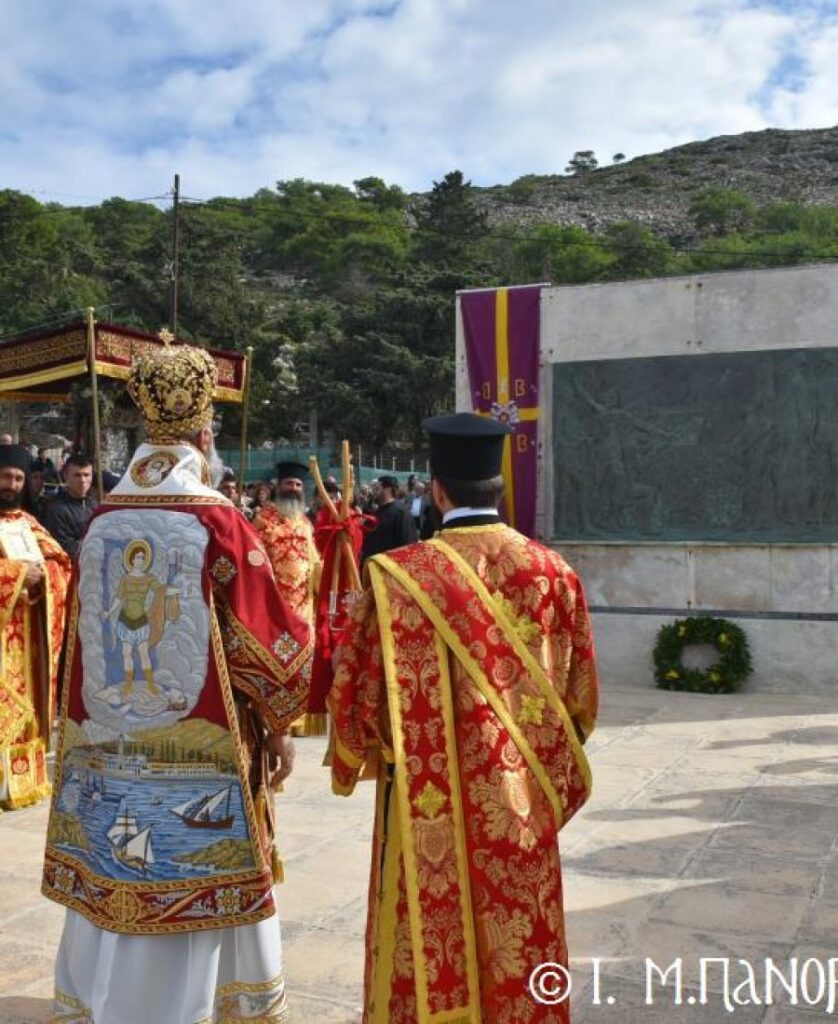 Μέ ἰδιαιτέρα λαμπρότητα καί σεμνή ἱεροπρέπεια ἡ τοπική Ἐκκλησία τῆς Σύμης, τίμησε τόν Παμμέγιστο Ἀρχάγγελο Μιχαήλ τόν Πανορμίτη, ἐδῶ στήν ὁμώνυμη Μονή Του, ὅπου σήμερα μέ τήν συμμετοχή λαοθάλασσας Πιστῶν, κορυφώθηκαν οἱ λατρευτικές ἐκδηλώσεις τῆς Ἱερᾶς Πανηγύρεως. Ὁ πνευματικός συναγερμός στό Νησί ἔχει ξεκινήσει ἤδη ἀπό τίς πρῶτες ἡμέρες τοῦ Νοεμβρίου, μέ χιλιάδες πιστούς νά καταφθάνουν ἀπ’ ὅλα τά μέρη τῆς Πατρίδος μας, γιά νά προσκυνήσουν τήν Χάρη τοῦ θαυματουργοῦ Ἀρχαγγέλου καί τό προσκύνημα συνεχίζεται ἀδιάκοπα καθ’ ὅλο τό νυχθήμερο, ἐχθές παραμονή καί σήμερα, τήν κυριώνυμη αὐτή ἡμέρα τῆς Συνάξεως τῶν Ἀρχαγγέλων. Οἱ εὐσεβεῖς προσκυνητές μέ βαθιά πίστη, ἱερό πόθο καί ἀξιοθαύμαστη ὑπομονή, σχηματίζουν οὐρές ἐνώπιον τῆς θαυματουργοῦ Εἰκόνας Του καί κλίνοντας τό γόνυ τῆς ψυχῆς καί τοῦ σώματος, ἀποθέτουν τό τᾶμα τους καί ἀνάβουν τό κερί τῆς προσευχῆς τους στόν Ἀρχάγγελο, ἄλλοι εὐχαριστῶντας γιά τήν εὐεργεσία πού ἤδη ἔλαβαν καί ἀφηγοῦνται συγκινημένοι, ἄλλοι παρακαλῶντας «ἐν δάκρυσιν», γιά νά λάβουν «τό δώρημα πρός τό συμφέρον τῆς αἰτήσεως».