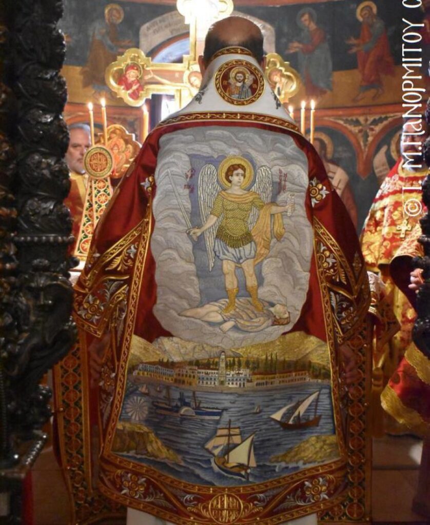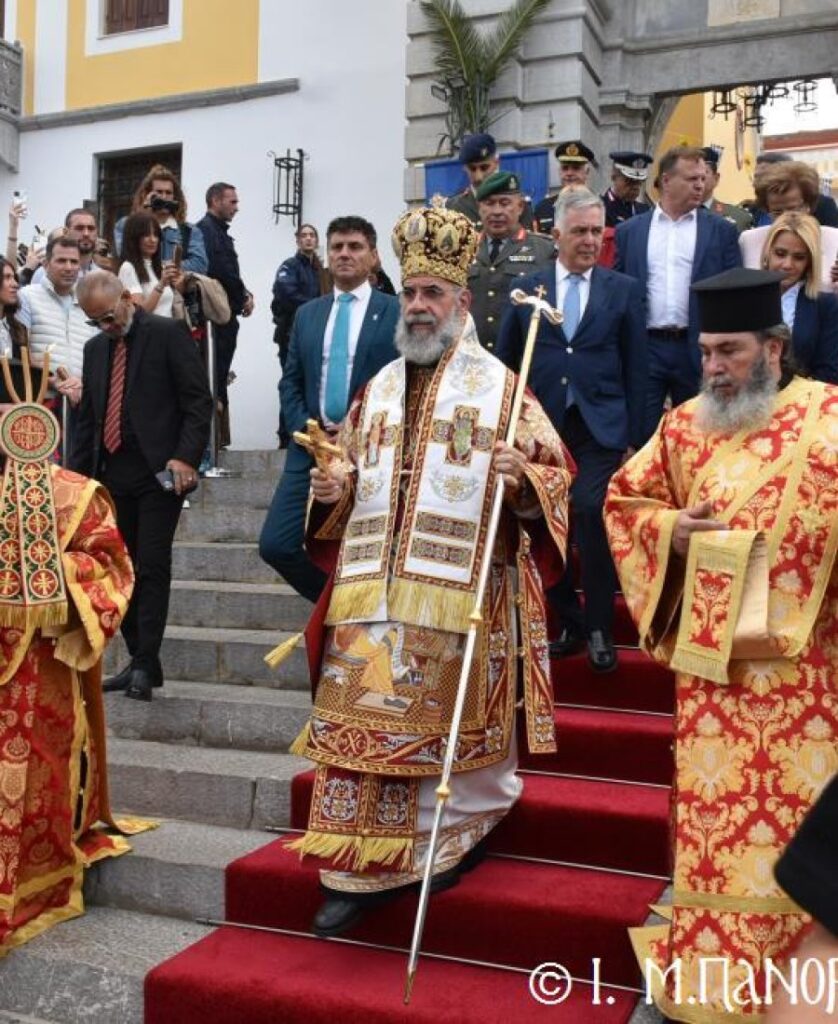 Ἡ Λιτανεία τέλος, κατέληξε καὶ πάλι στὴν κεντρικὴ Πύλη, ὅπου ἀνεπέμφθη ἡ καθιερωμένη Δέησις καί ὁ Σεβ. Ποιμενάρχης μας κ. Χρυσόστομος ἔκανε τήν Ἀπόλυση, εὐχαριστῶν ὅλους τούς ἐπωνύμους καὶ ἀνωνύμους γιὰ τὴν παρουσία τους, τὸν ἱερὸ Κλῆρο καὶ τὸν Λαὸ γιὰ τὴν ἀγάπη τους καὶ τὴν συμμετοχή τους, τόν ἐψηφισμένο Ἐπίσκοπο Ροδοστόλου – Ἡγούμενο καί τὰ μέλη τῆς Ἐφορείας τῆς Ἱερᾶς Μονῆς, τοὺς Ἱεροψάλτες, τοὺς Τοπικοὺς Φορεῖς καὶ τοὺς πολλοὺς ἐθελοντὲς γιὰ τὴν συνεργασία καὶ τὴν βοήθειά τους στὴν ἄρτια διοργάνωση καί ὑλοποίηση καί τῆς ἐφετινῆς Πανηγύρεως. Ὁ Σεβασμιώτατος ἀνεφέρθη ἰδιαιτέρως στήν δημοσίευση τοῦ Προεδρικοῦ Διατάγματος ὑπ’ ἀριθ. 90/2025 στὸ ΦΕΚ μέ ἀριθ. 182/Α΄/23-10-2025, διά τοῦ ὁποίου καθιερώνεται πλέον καί ἐπισήμως ὡς ἀργία διὰ τὸν Δῆμο Σύμης ἡ 8η Νοεμβρίου, ἡμέρα τῆς ἑορτῆς τοῦ Παμμεγίστου Ταξιάρχου Μιχαήλ τοῦ Πανορμίτου, Προστάτου καί «Πολιούχου» τῆς Νήσου Σύμης.