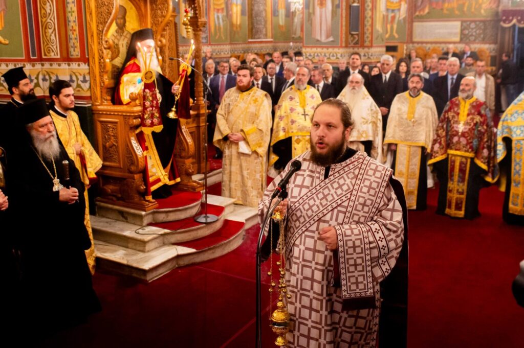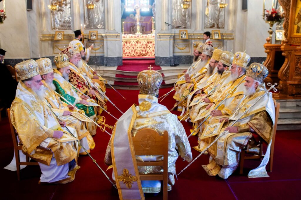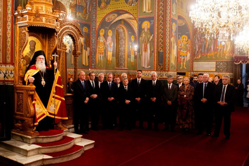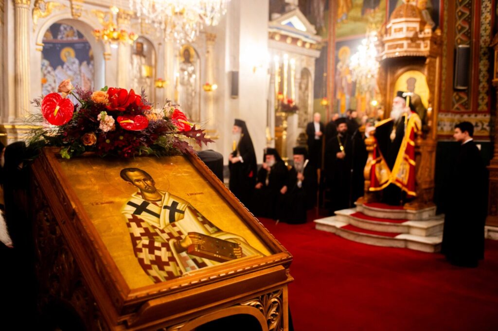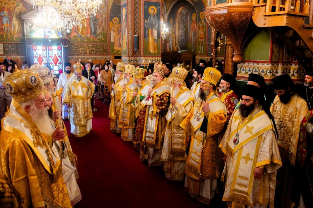 Στην Ακολουθία του Όρθρου χοροστάτησε ο Σεβ. Μητροπολίτης Θήρας, Αμοργού και Νήσων κ. Αμφιλόχιος, ενώ της πολυαρχιερατικής Θείας Λειτουργίας προεξήρχε ο εορτάζων Σεβ. Μητροπολίτης Μεσσηνίας κ. Χρυσόστομος. Συλλειτούργησαν οι Σεβ. Μητροπολίτες Ξάνθης και Περιθεωρίου κ. Παντελεήμων, Άρτης κ. Καλλίνικος, Ιλίου, Αχαρνών και Πετρουπόλεως κ. Αθηναγόρας, Κηφισίας, Αμαρουσίου και Ωρωπού κ. Κύριλλος, Μαρωνείας και Κομοτηνής κ. Παντελεήμων, Θεσσαλιώτιδος και Φαναριοφερσάλων κ. Τιμόθεος, Μεγάρων και Σαλαμίνος κ. Κωνσταντίνος, Καρθαγένης κ. Μελέτιος, Σταγών και Μετεώρων κ. Θεόκλητος, Λήμνου και Αγίου Ευστρατίου κ. Ιερόθεος, Πολυάνης και Κιλκισίου κ. Βαρθολομαίος, Θήρας, Αμοργού και Νήσων κ. Αμφιλόχιος, Μαντινείας και Κυνουρίας κ. Επιφάνιος, καθώς και ο Θεοφιλέστατος Επίσκοπος Τεγέας κ. Θεόκλητος.