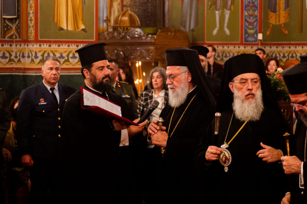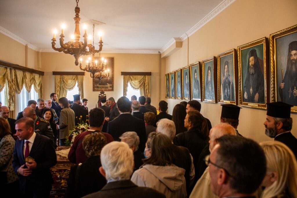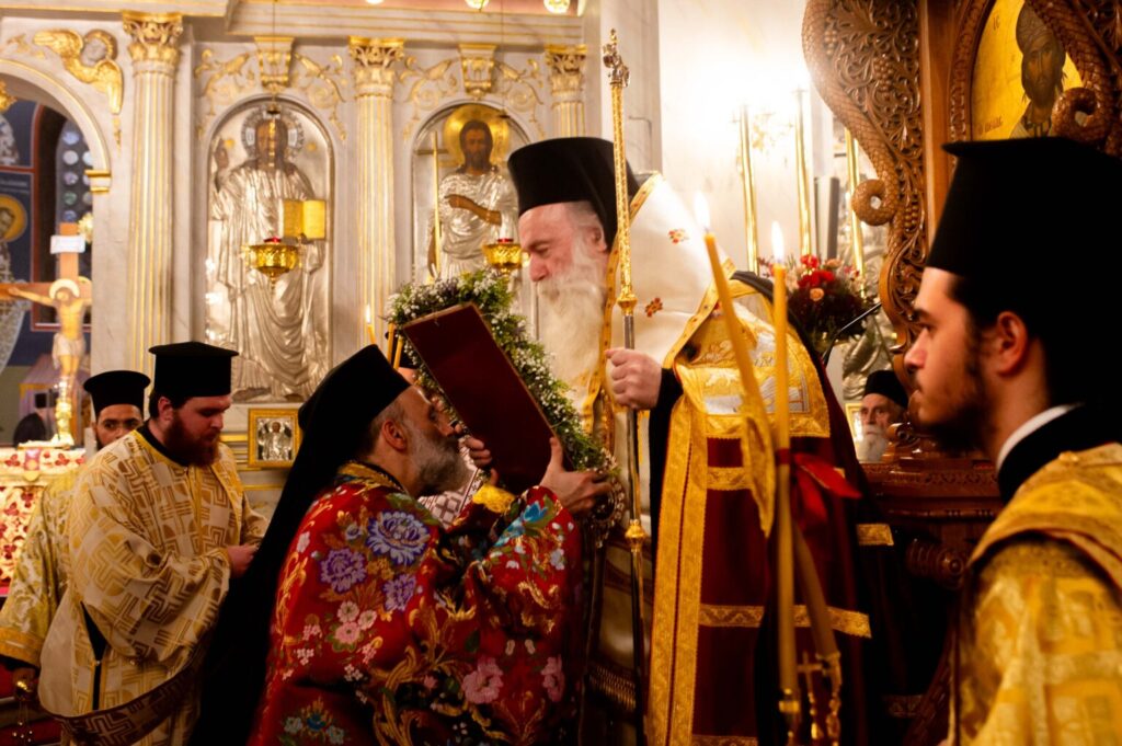 Ακολούθως, στο Επισκοπικό Μέγαρο ο Σεβασμιώτατος δέχθηκε ευχές από τους Ιερείς της Μητροπόλεως, τους τοπικούς άρχοντες και πλήθος πιστών.