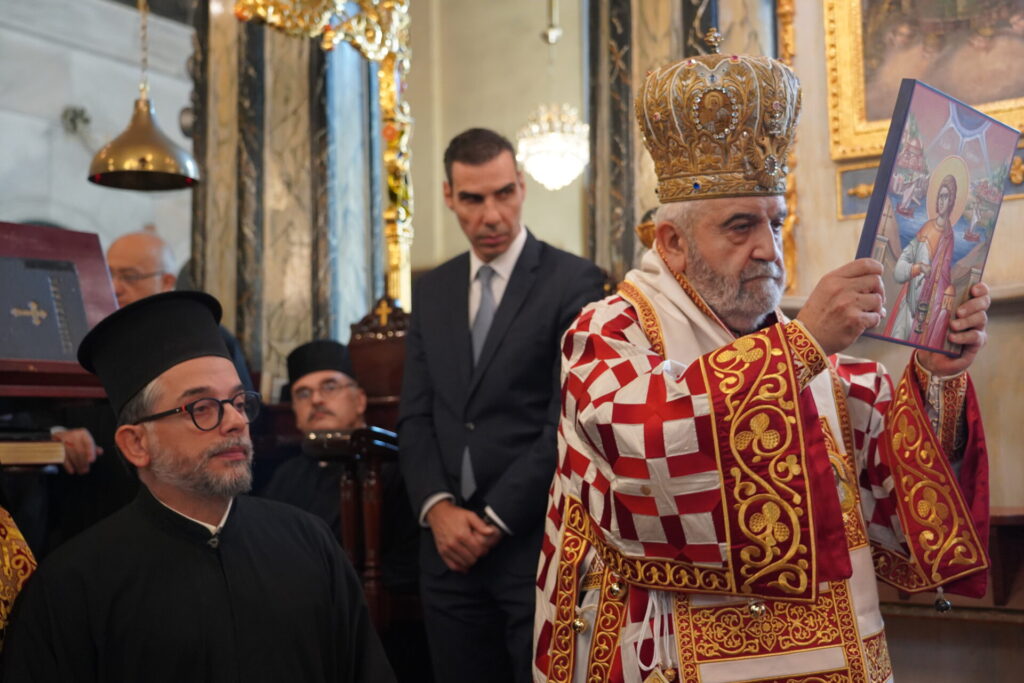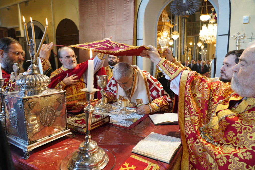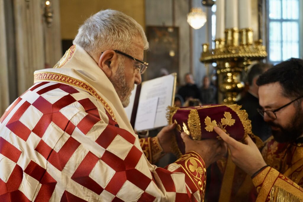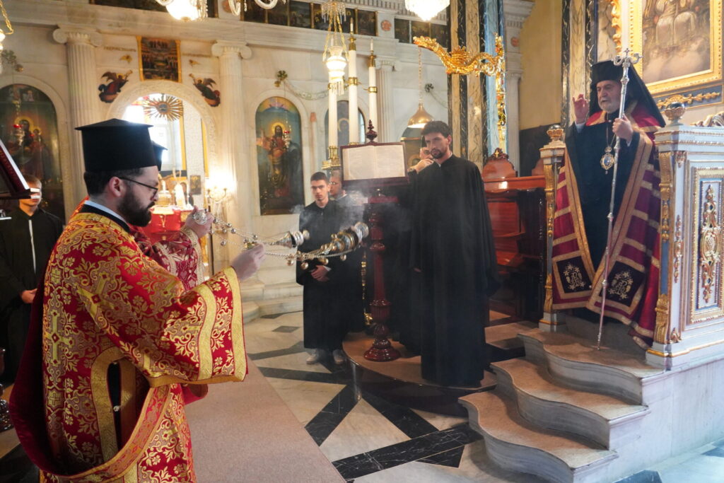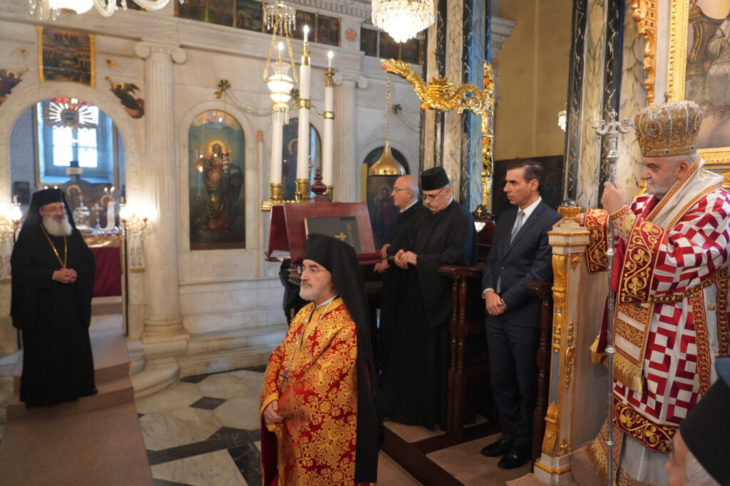 Εκκλησιάστηκαν οι Αρχιερείς Σεβ. Γέρων Χαλκηδόνος κ. Εμμανουήλ, Φιλαδελφείας κ. Μελίτων, Μυριοφύτου και Περιστάσεως κ. Ειρηναίος, Καλλιουπόλεως και Μαδύτου κ. Στέφανος, Κυδωνιών κ. Αθηναγόρας, Ανθηδώνος κ. Νεκτάριος, Επίτροπος του Παναγίου Τάφου στην Πόλη, Σηλυβρίας κ. Μάξιμος, Σαράντα Εκκλησιών κ. Ανδρέας, και Θεοφιλ. Ξανθουπόλεως κ. Παΐσιος, ο Εξοχ. Υφυπουργός Υγείας της Ελλάδος κ. Μάριος Θεμιστοκλέους, ο Εξοχ. κ. Ανδρέας Κατσανιώτης, Βουλευτής, πρώην Υφυπουργός Εξωτερικών της Ελλάδος, ο Εντιμ. κ. Αθανάσιος Μπαλέρμπας, Γενικός Γραμματέας Εσωτερικών στο Υπουργείο Εσωτερικών, η Εξοχ. κ. Παρασκευή Τζεβελέκη, Πρέσβης της Ελλάδος στο Ουζμπεκιστάν, ο Εντιμ. κ. Γεώργιος Μάμαλος, εκ προσώπου του Γενικού Προξένου της Ελλάδος στην Πόλη, ο Εντιμ. Δήμαρχος Αλεξανδρούπολης κ. Ιωάννης Ζαμπούκης, και πλήθος πιστών από την Πόλη, την Ελλάδα και την Ουκρανία.