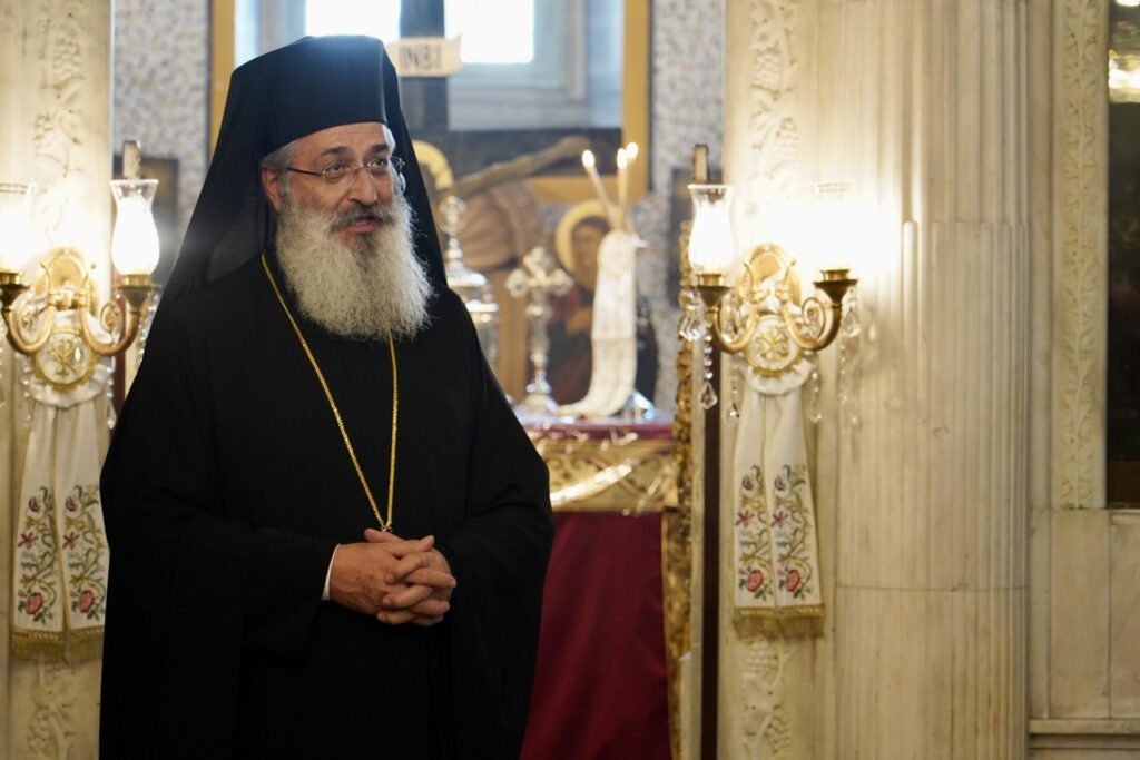 Μετά το πέρας όλων των ομιλιών, ο Παναγιώτατος απηύθυνε εγκάρδιες συγχαρητήριες ευχές προς τον Σεβ. Μητροπολίτη Γέροντα Δέρκων.